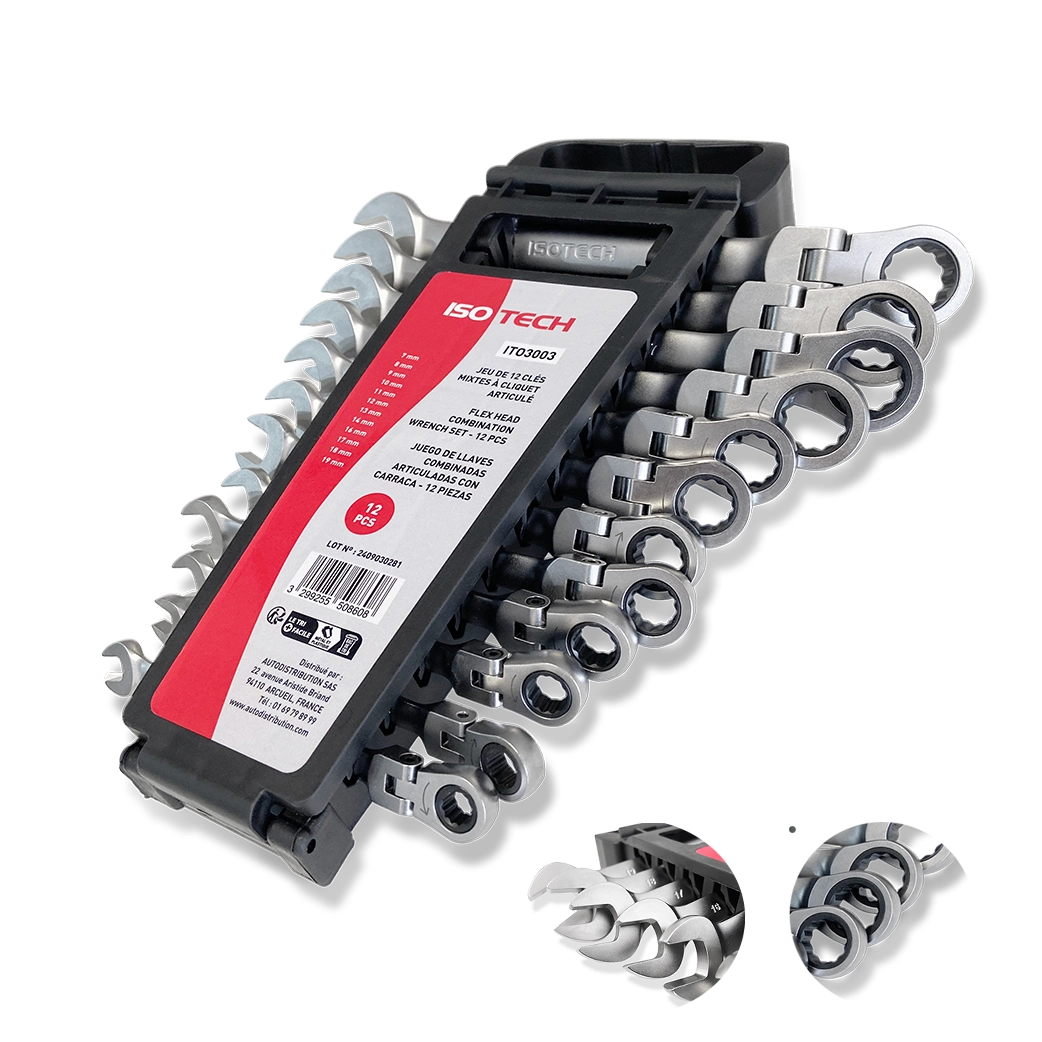 JUEGO DE 12 LLAVES COMBINADAS CON TRINQUETE ARTICULADO