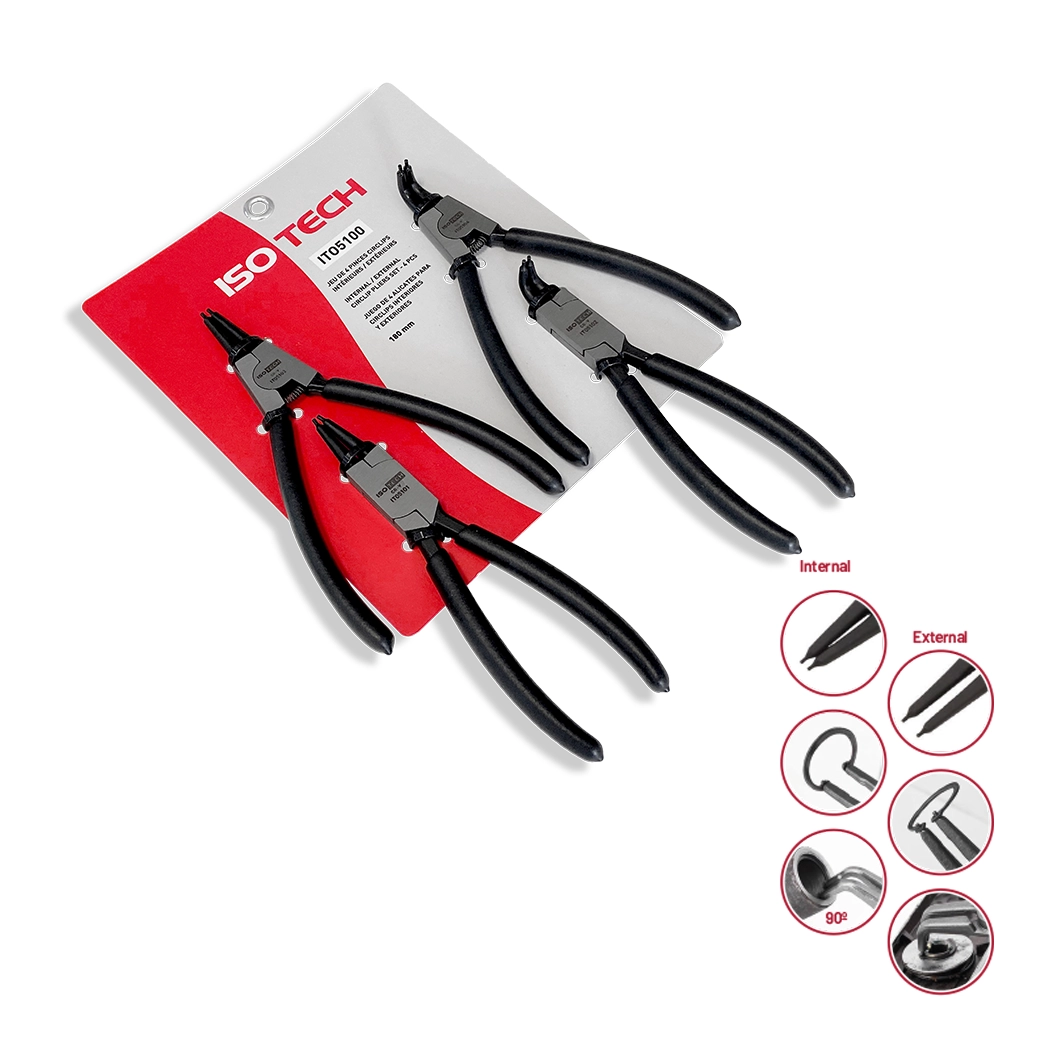 JUEGO DE 4 ALICATES PARA ANILLOS DE RETENCIÓN INTERIORES/EXTERIORES: 180 mm