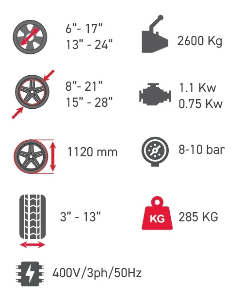 Portada » Boutique » DÉMONTE-PNEUS AUTOMATIQUE AVEC MOTEUR INVERTER