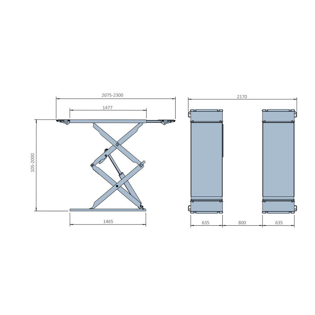• Longueur des rampes réglables de 1477 mm à 2300 mm